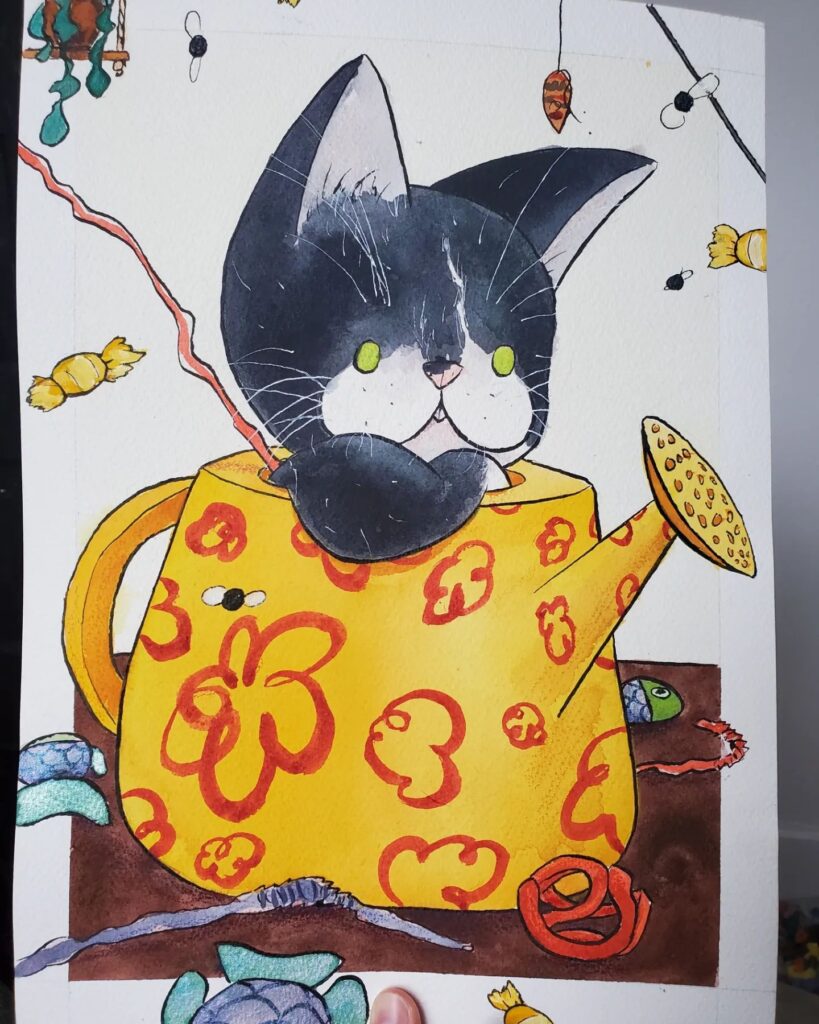 Andi Keating is a watercolor illustrator who specializes in whimsical subjects and themes. They graduated in 2020 from Western Washington University with a Bachelor of Arts in Visual Art with a Mixed Media Concentration (the irony is rather fitting). What is art if you don’t have some fun with it.
